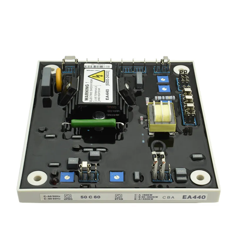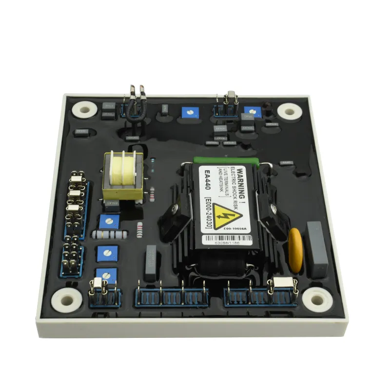 Emplea tecnología de montaje en superficie (SMT) para lograr una alta integración de funciones en un AVR de tamaño compacto. La acumulación de voltaje positivo a partir de niveles residuales se asegura mediante semiconductores de alto rendimiento en el circuito de alimentación del AVR. Los circuitos de control y detección de voltaje tienen terminales separados, lo que permite que la energía de alimentación de campo provenga directamente del devanado del estator para aplicaciones normales o de un devanado auxiliar cuando se requiere un funcionamiento sostenido en cortocircuito. Está conectado con los devanados del estator principal y del campo del excitador para ofrecer control de voltaje de salida en circuito cerrado, con regulación de carga de ±1%.