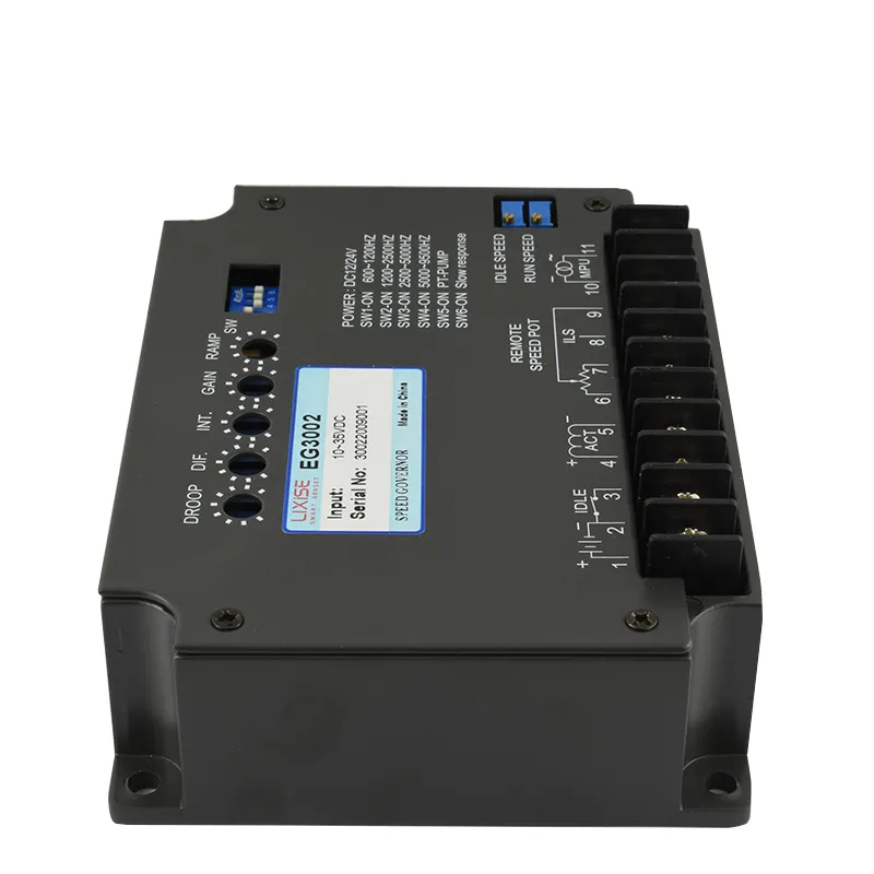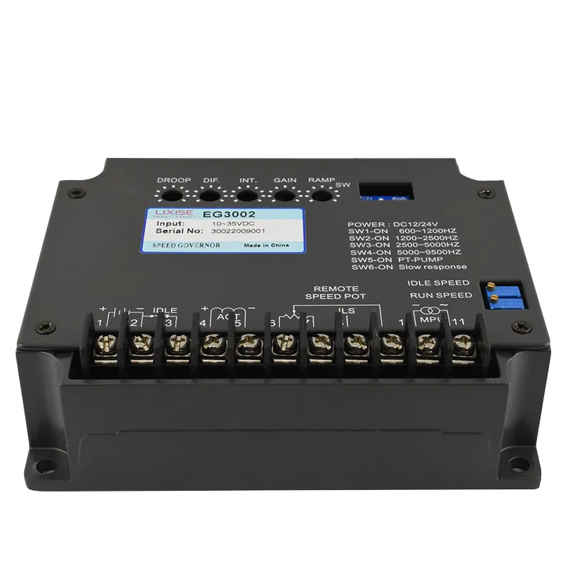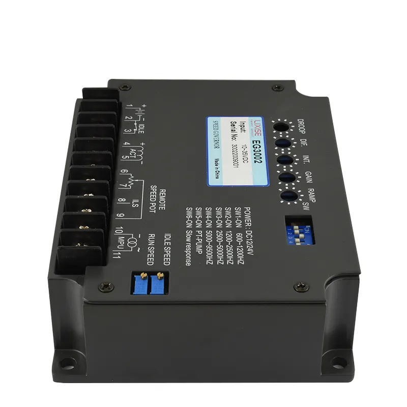 El controlador electrónico EG3002 funciona tomando una señal de un captador magnético (MPU) y comparándola con una velocidad preestablecida del motor. Con esto, regula el voltaje de accionamiento al actuador para mantener constante la velocidad del motor.