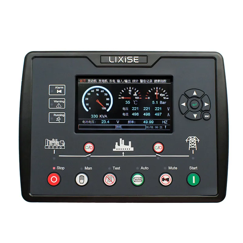El controlador LXC6820 integra tecnología digital e inteligente para el monitoreo remoto y la automatización de un solo grupo electrógeno. Su pantalla TFT LCD a color muestra múltiples estados y fallas simultáneamente, con una interfaz de usuario renovada que permite detener el equipo de forma segura ante fallos. Todos los parámetros pueden ajustarse desde el panel o de forma remota mediante USB, RS485 o GPRS. Es apto para grupos electrógenos, bombas contra incendios y sistemas de compresores de aire.